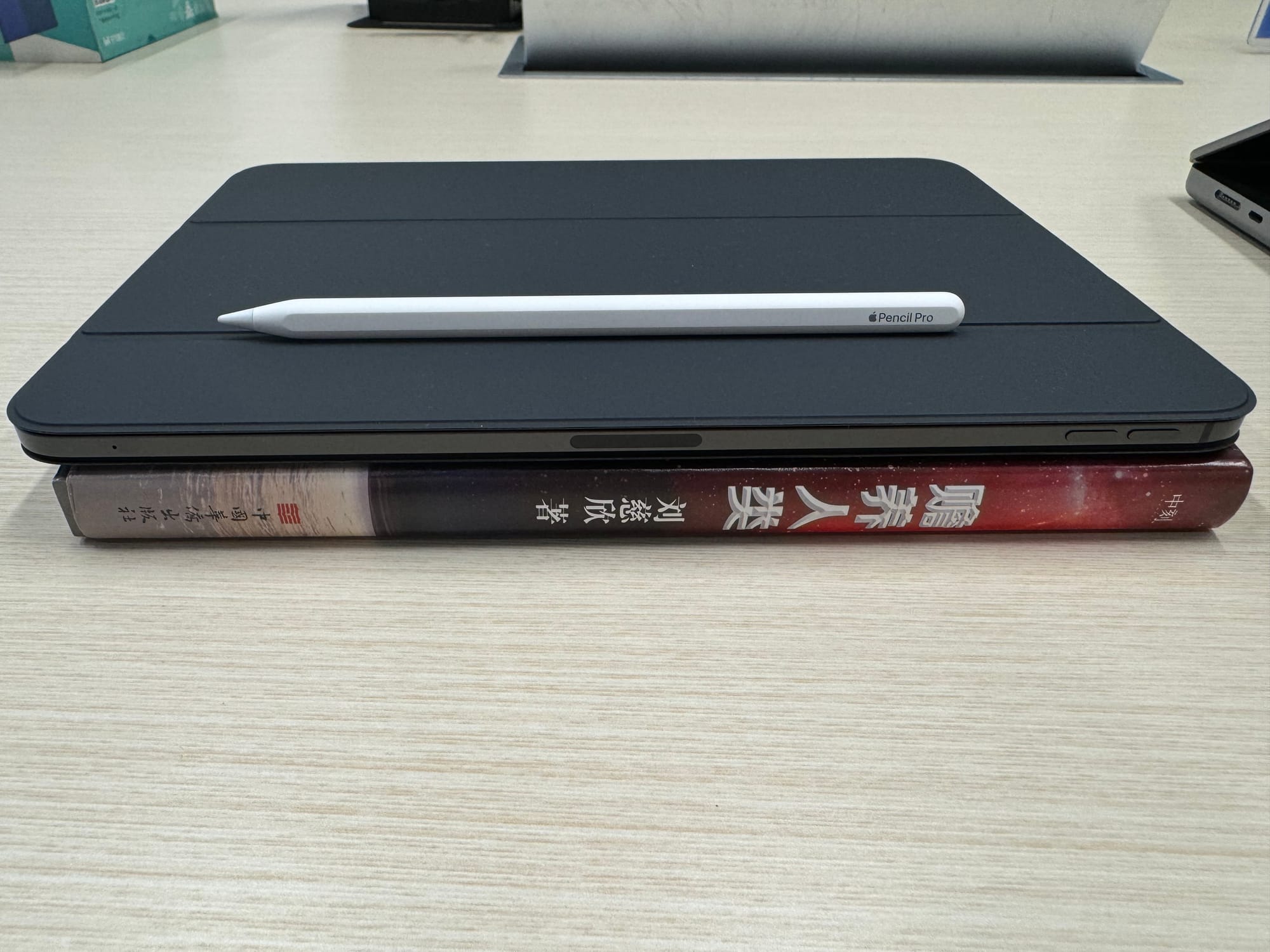 iPad Pro 到货的那周周末,我就去三里屯 Apple 店买了 Apple Pencil Pro 和智能双面夹。当时很纠结要不要买新出的妙控键盘。最后听了苹果店员工的建议,选择了智能双面夹。他说我的大部分工作还是得在电脑上完成,给 iPad 配一副键盘的意义不大,毕竟我的工作不像一些其他岗位,拿着 iPad 就能干活。