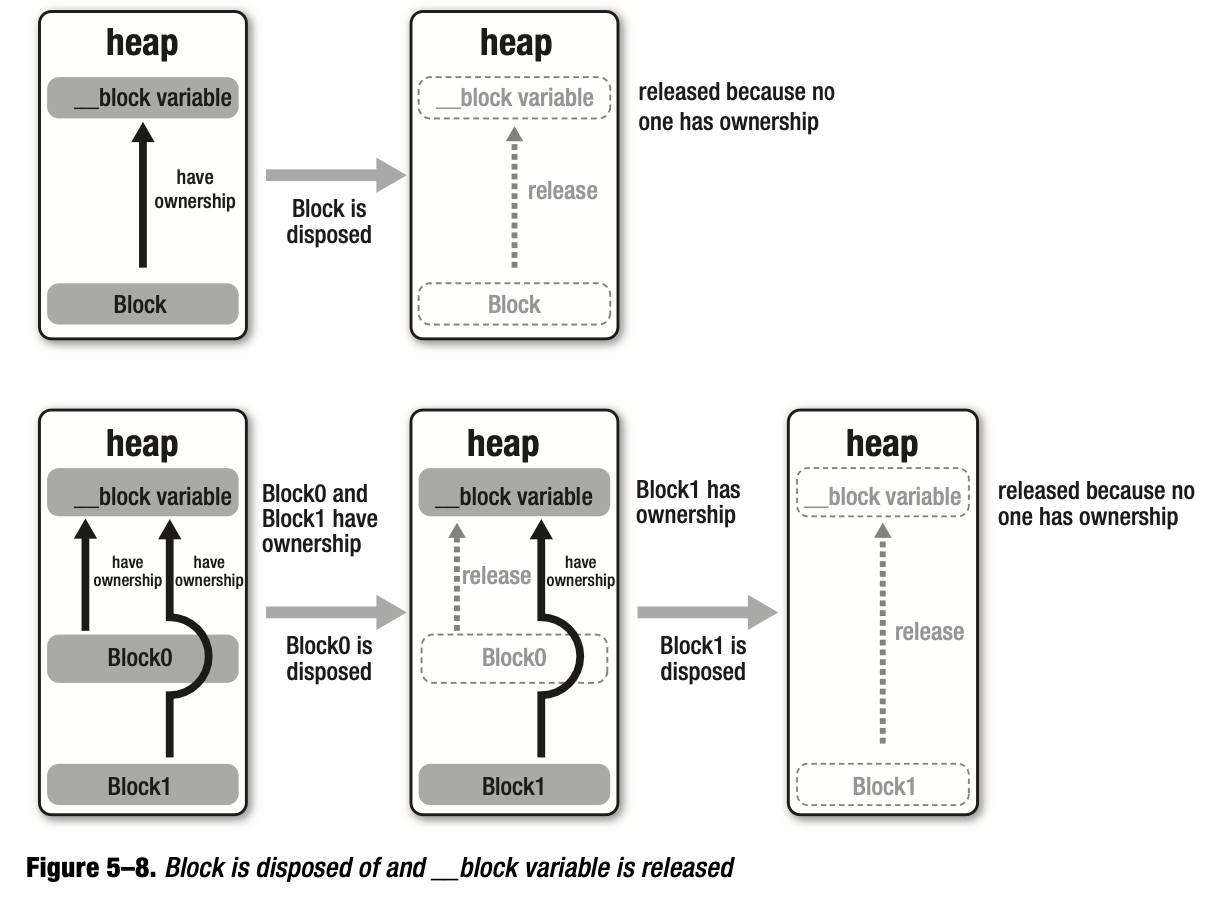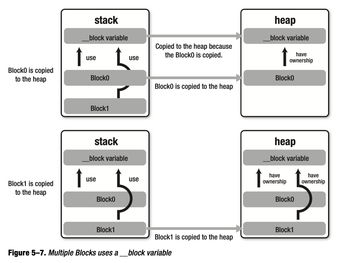 先记住总的原则:当 Block 由栈区拷贝到堆区后,其捕获的 __block 变量也会由栈区拷贝到堆区,拷贝完成后 Block 依旧对 __block 变量有所属权。