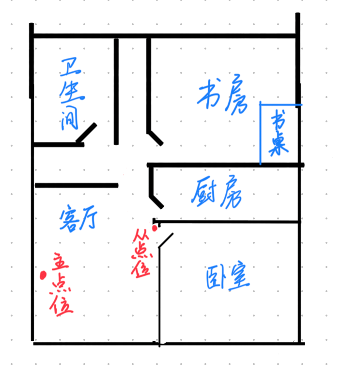 主点位放置在客厅茶几上,方便连接电视。从点位放在卧室门口,那里恰好有一个不耽误过路的小拐角可以放路由器。平常我们基本不在客厅活动,其他区域最近的 Wi-Fi 信号源是从路由器,因此我们大多数的设备连接的都是从路由器。从路由器的工作负荷很大。